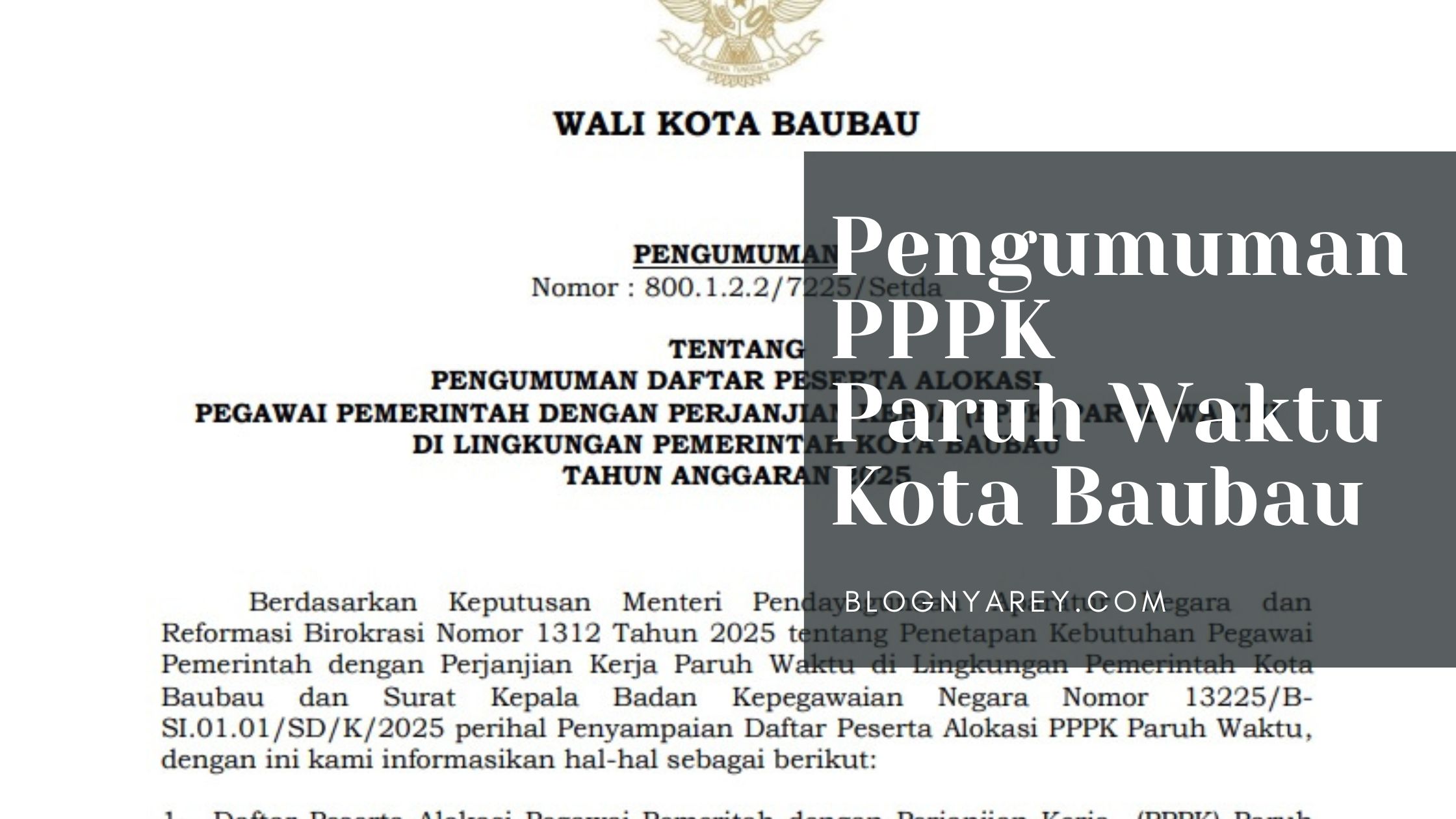 Pengumuman Alokasi Pegawai Pemerintah Dengan Perjanjian Kerja (PPPK) Paruh Waktu Tahun Anggaran 2025 ini tertuang pada Nomor 800.1.2/7225/Setda.